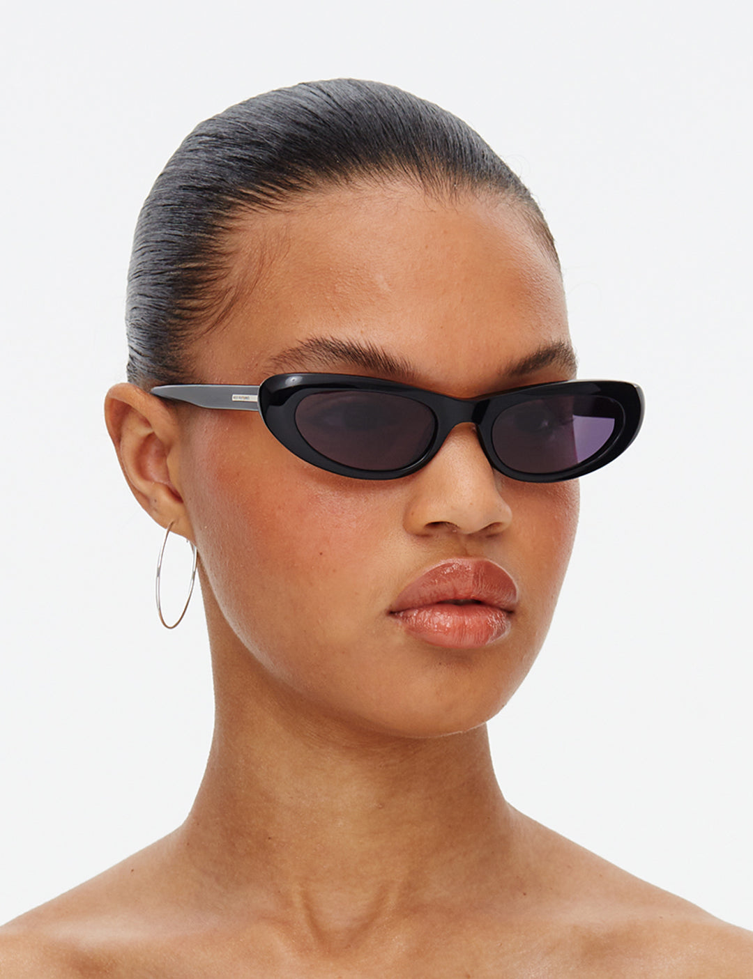 Subtly curved thin oval profile with a narrow elongated cat eye. Features ultra comfort deep-set moulded nose bridge, counter weighted temple ear-tips and smooth bevelled frame edges. Complete with Hot Futures silver bar branding on the temples and statement Hot Futures flame ear tip logo.