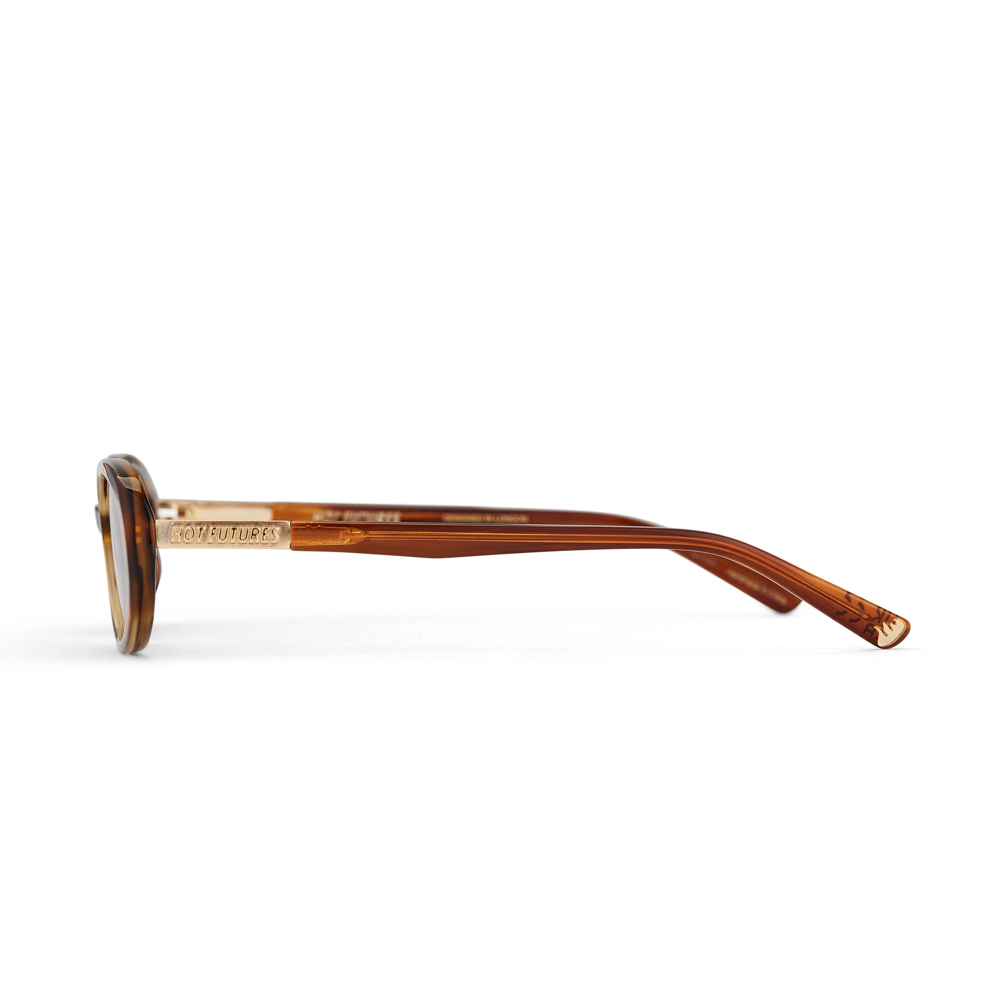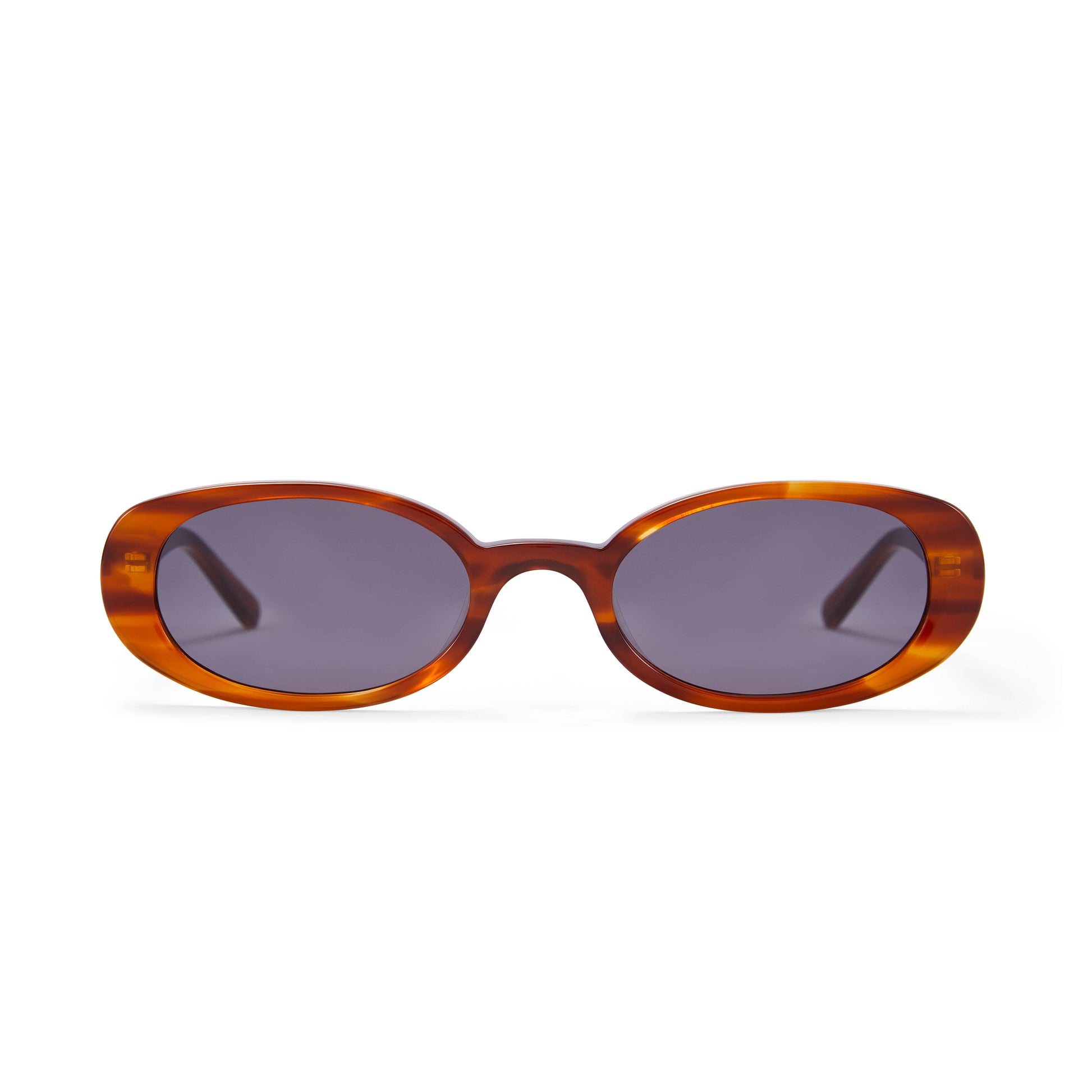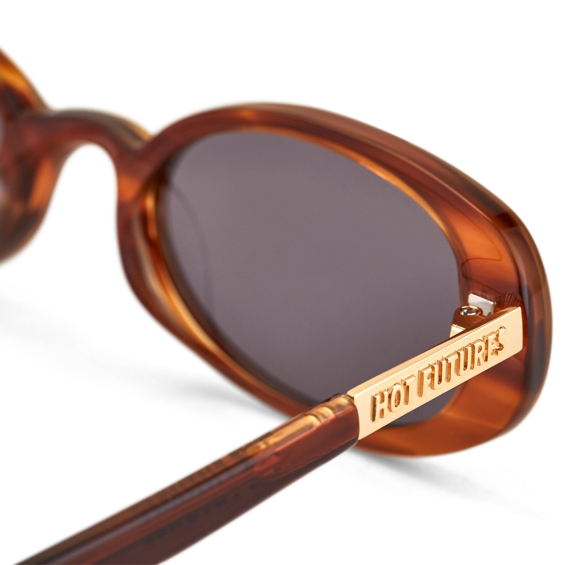 Eco caramel acetate frame. Green 100% UVA/UVB protected CR39 Category 3 lenses. Three barrel alloy hinges. Frame width (edge to edge): 139.5mm // Temple Length: 140mm // Lens width: 50mm // Lens height: 31mm.