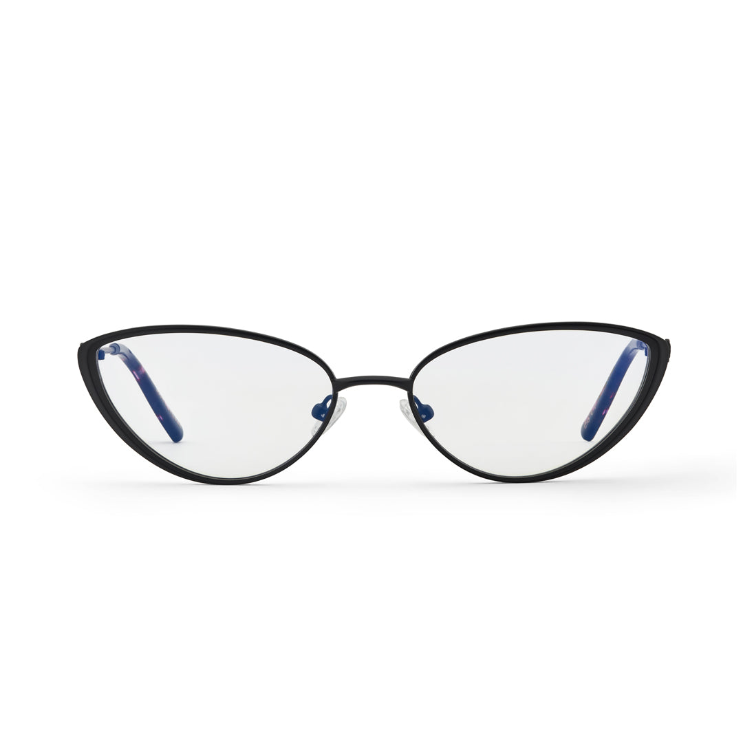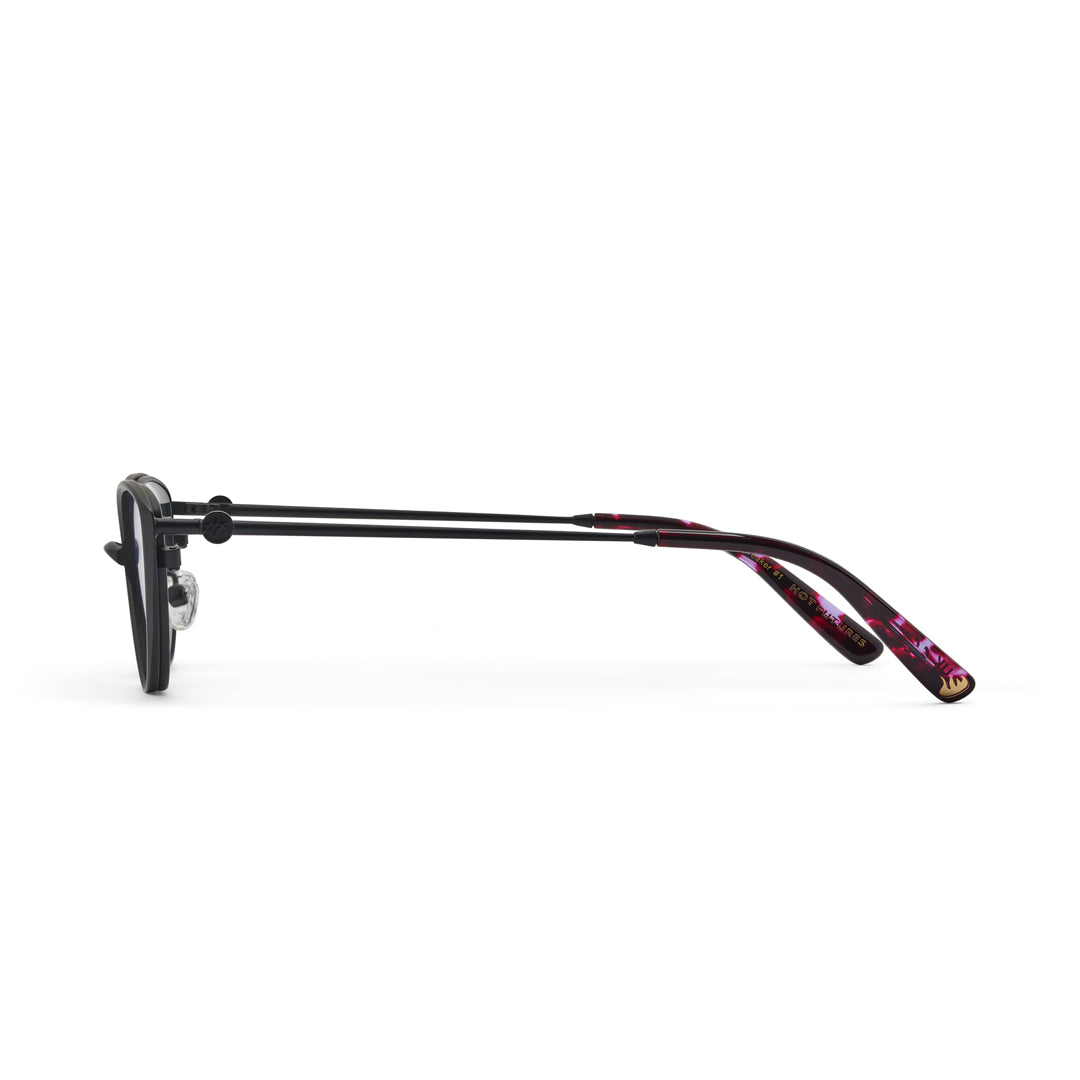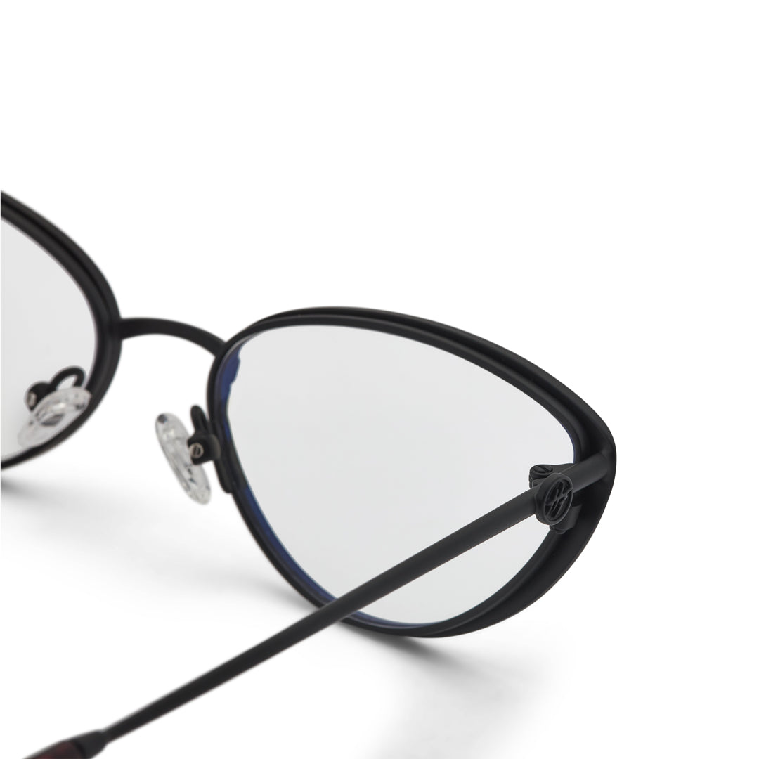 Handcrafted from high quality matte black metal with premium acetate ear tips. Frame width (edge to edge): 139mm // Temple Length: 143mm // Lens width: 56mm // Lens height: 35mm.