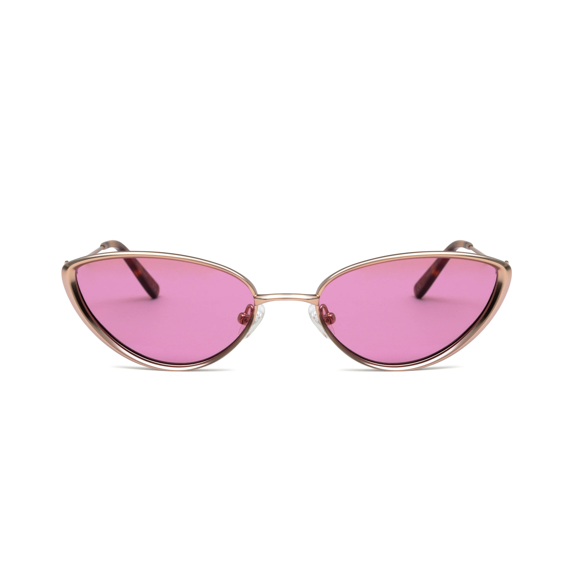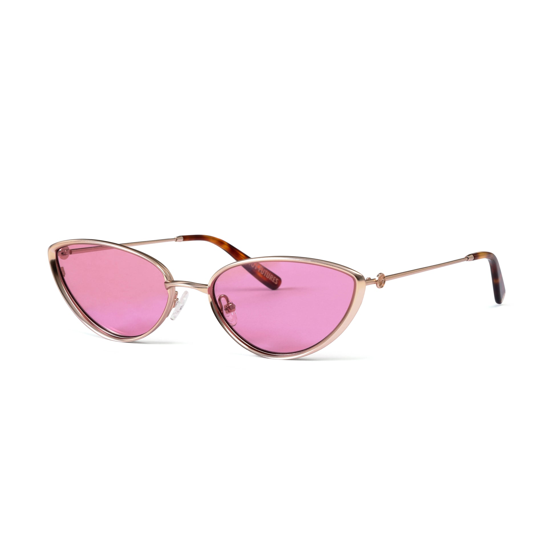 Handcrafted from high quality matte gold metal with premium acetate ear tips. Pink 100% UVA/UVB protected CR39 Category 1 lenses. Frame width (edge to edge): 139mm // Temple Length: 143mm // Lens width: 56mm // Lens height: 35mm.
