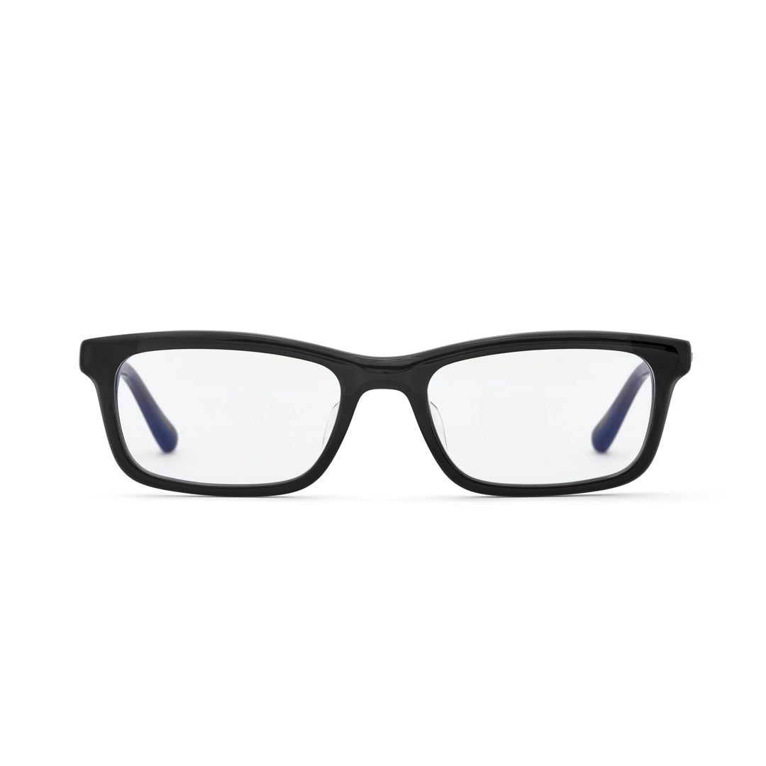Recycled black acetate frame (Global Recycled Standard). Integrated alloy hinges. Frame width (edge to edge): 140mm // Temple Length: 150mm // Lens width: 53mm // Lens height: 31mm.